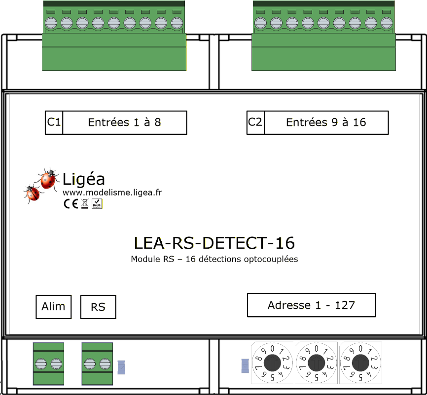 En ce qui concerne le bus RS Lenz, nos boîtiers sont équipés de roues codeuses, ce qui permet de configurer leur adresse plus facilement.