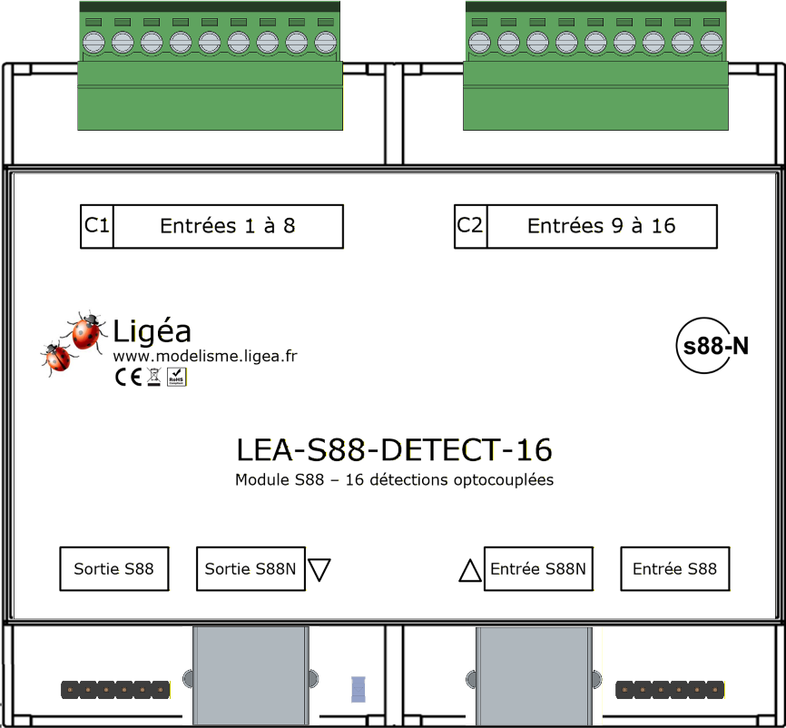 Les boitiers DETECT-16 permettent l’alimentation de la file de rail isolée à partir du boîtier ; l’autre file de rail est alimentée directement à partir du feeder.